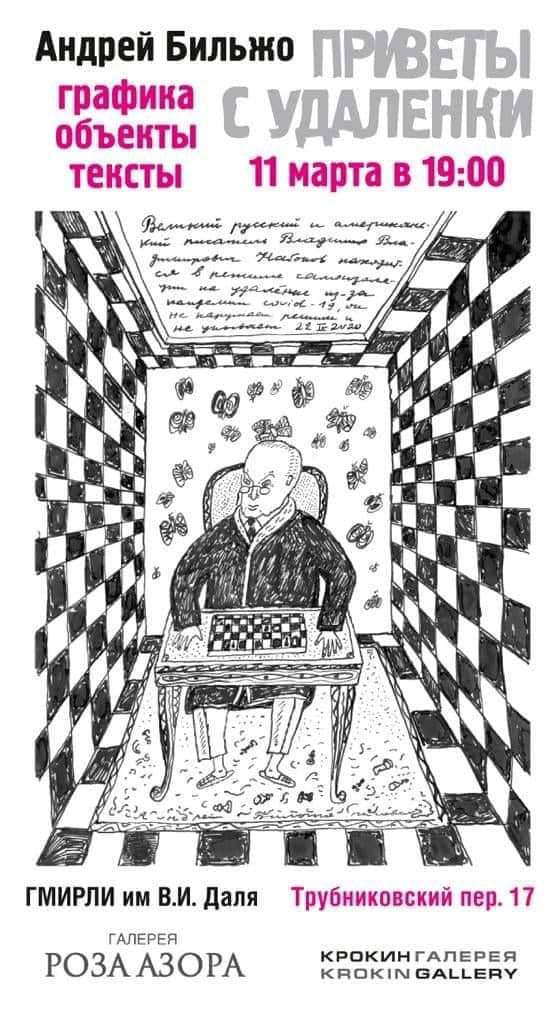 Работы известного художника-карикатуриста Андрея Бильжо, представленные на этой выставке, были придуманы и сделаны автором, когда он находился «на удаленке». Для автора этих работ удаленка — состояние новое. Но для его героев, персонажей произведений, удаленка оказалась состоянием вполне естественным: они находятся на удаленке от нас на десятки, а то и сотни лет.